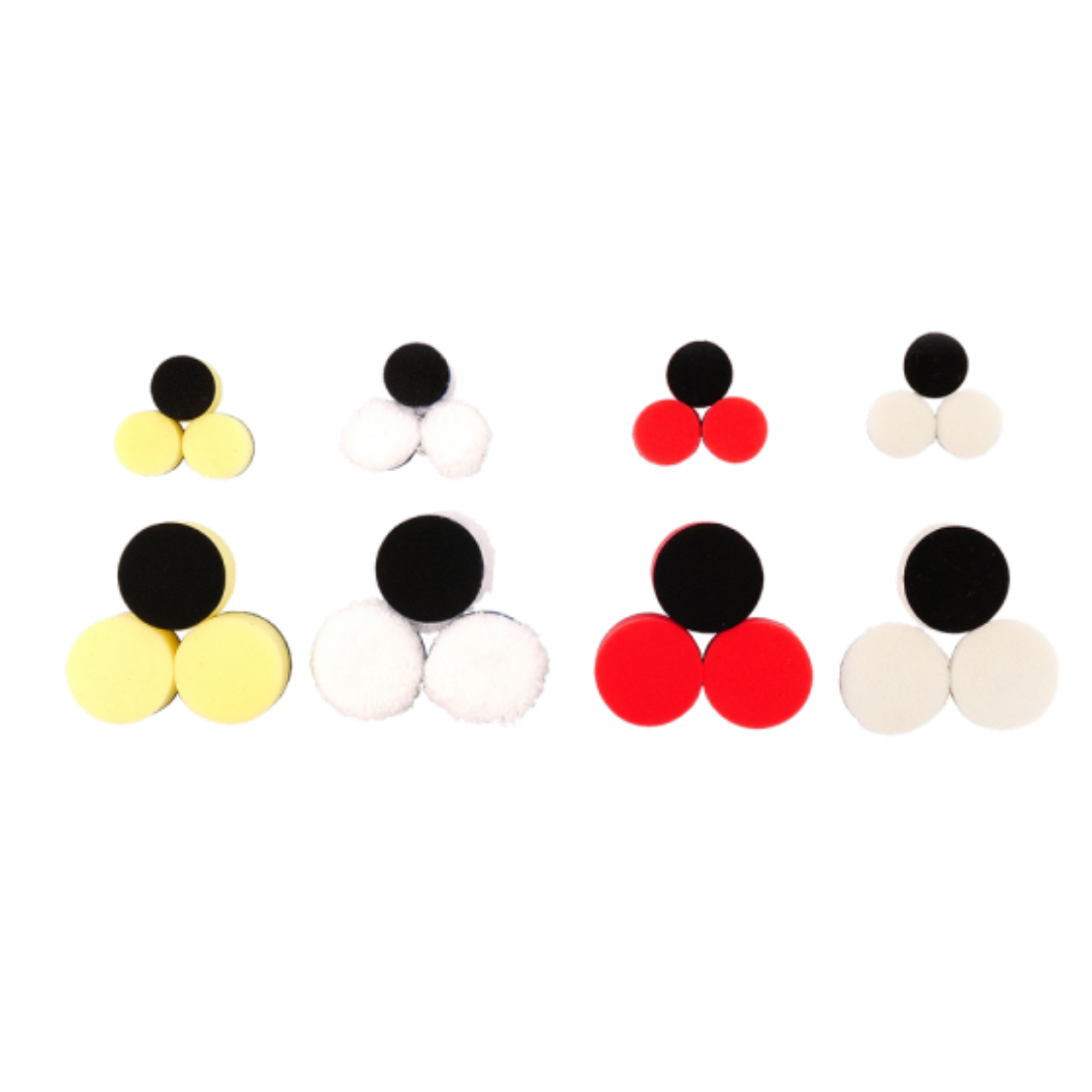 O Kit Mini Cordeless Polisher Pads Kit oferece um conjunto completo de boinas para a correção de pormenores da pintura e de outras superfícies. O kit possui dois tamanhos diferentes de cada uma das boinas, microfibras, corte, polimento e acabamento tendo 3 unidades de cada. Adequadas para as tarefas de polimento numa grande variedade de superfícies como aço inox, metais, madeira envernizada, cromados, superficies sintecticas “piano” e outras.